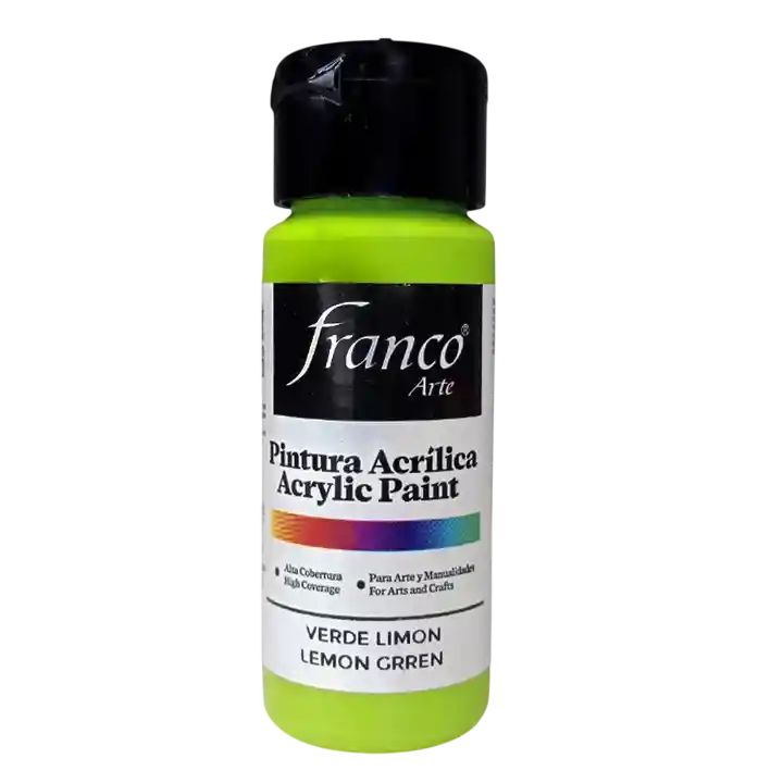 Pintura Acrilica Verde Limon 60cc. NO TÓXICA, acabado liso, durable, no se decolora, lavable, alto rendimiento...Ver más