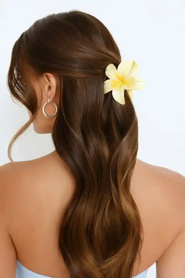 Caimán Pinza Gancho Flor Hawaiana para Pelo/Cabello Incluye: 1 unidad Diseño: Flor Hawaiana Degradé Color: Amarillo Tamaño: Grande Dimensiones: 7 cm x 8 cm Características: - Diseño único y llamativo: Forma de flor tropical que aporta personalidad y estilo a tu peinado. - Variedad de colores: Cada set incluye 3 pinzas en colores degradados distintos para combinar con diferentes estilos y ocasiones. - Sujeción firme y cómoda: Pinzas grandes y livianas que ofrecen un agarre seguro y confortable, ideales para cabellos de longitud media a larga. - Versatilidad: Perfectas para uso diario, eventos especiales, vacaciones o días en la playa. ¡Dale un toque tropical y alegre a tu look con estas pinzas en forma de flor hawaiana! *Las imágenes de los productos pueden variar ligeramente en color respecto al producto real debido a la iluminación y las configuraciones de pantalla en diferentes dispositivos.