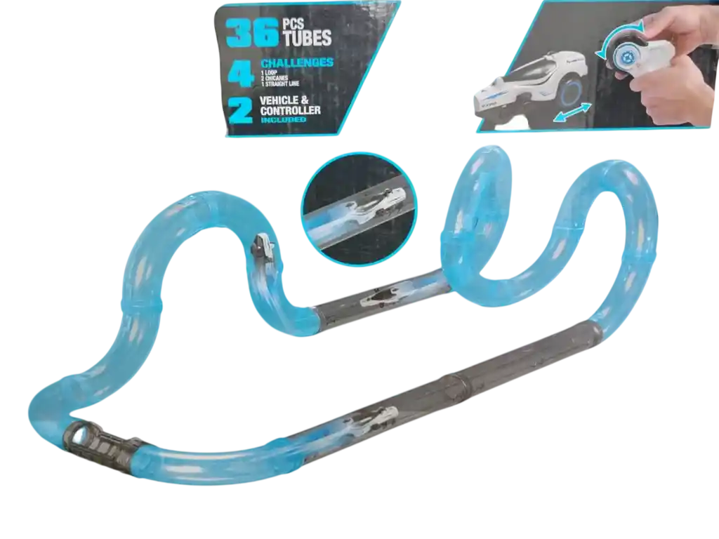 Pista Tubo elctrica grande incluye dos carros recargables dos controles una bola de luz dos cargadores usb par...Ver más