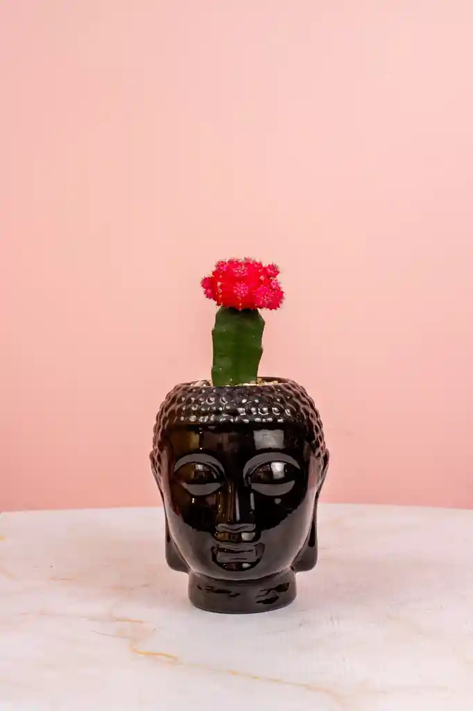 🌵✨ Cactus Coreano Rojo en matera de Buda negra de cerámica, una pieza única que combina la belleza del cactus vibrante con el toque espiritual de la figura de Buda. Perfecta para decorar tu hogar con estilo y elegancia, este cactus es fácil de cuidar y aporta un aire moderno y zen a cualquier espacio. 🖤🌿 ¡Un equilibrio entre naturaleza y diseño!