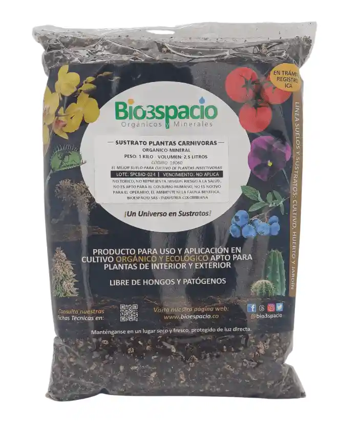 Sustrato ideal para cultivo de plantas carnívoras. Es un sustrato pobre en nutrientes con PH adaptado, ideal para el crecimiento integral de plantas dionaeas, droseras, utricularias y pinguiculas. Posee excelente retención de agua para simular condiciones pantanosas y buen drenaje para evitar que las raíces se encharquen y pudran.