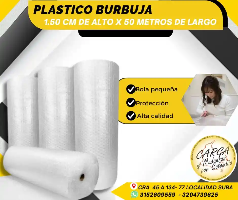 El plástico burbuja es uno de los materiales más importantes a la hora de proteger y cubrir todo tipo de productos dentro del sector del embalaje/empaque de mercancias. - Burbuja de aire de 1 cm - Ayuda a amortiguar los golpes que subran las mercancias u objetos. - Resistente, se adapta a todo tipo de objeto. - Facil para corte, aisla de la humedad y del polvo. Medidas: 150 de alto X 50 mts. de ancho (Cantidad) Alta Calidad - Producto Garantizado Visítanos: Cr. 45a # 134 - 77 Local Esquina Contáctanos: 315 2609 559 *ASESORIA SIN COSTO POR WHATSAAP*