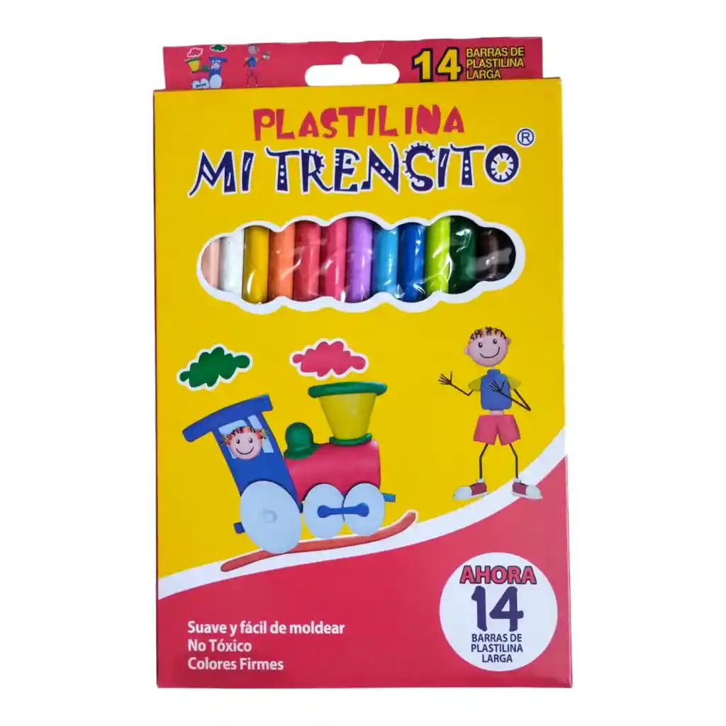*La plastilina Mi Trensito es ideal para modelar figuras u objetos y dar rienda suelta a la creatividad. Además, potencia las habilidades motrices en los niños. CARACTERÍSTICAS: *La plastilina Mi Trensito no es tóxica. *No mancha. *Tiene colores vivos y son combinables, es decir, se pueden mezclar entre sí dos o más colores para crear colores nuevos. *La caja de plastilina Mi Trensito x 10 unidades trae los colores Negro,Gris, Morada, Fucsia, Café, Verde Oscuro, Verde Claro, Azul Rey, Rojo, Naranja, Amarillo, Naranja, Blanco y Piel. *Cada barra de plastilina tiene una longitud de 15cm y 6mm de diámetro.
