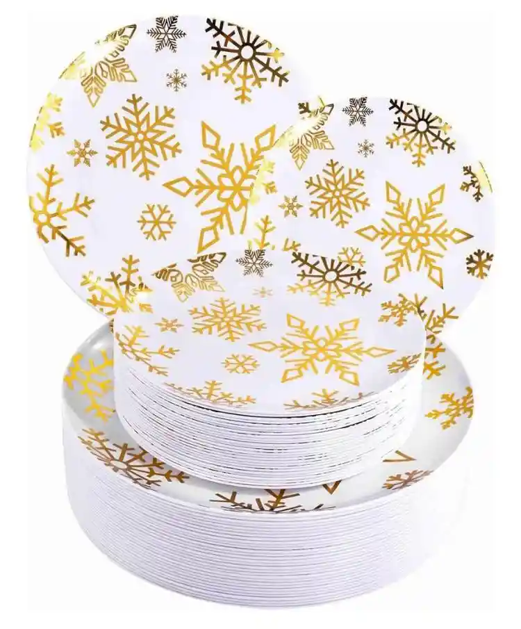 CADA PAQUETE CONTIENE 6 UNDS PLATO 18 CMS Y 6 UNDS DE PLATO26 CMS HERMOSO DISEÑO COPO DE NIEVE QUE COMBINA CON CUALQUIER AMBIENTE