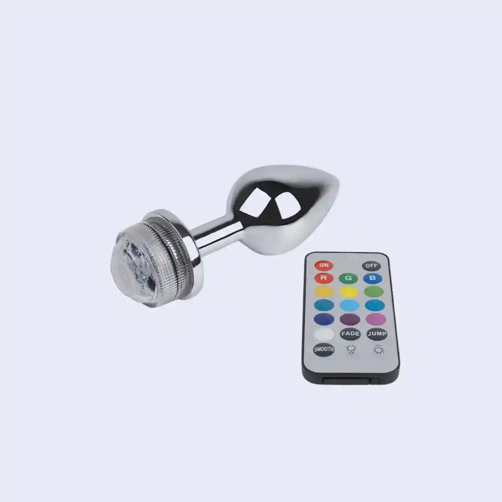 Plug Anal Luminoso a control remoto Has divertido el juego previo del sexo anal. Que nada te límite para vivir nuevas experiencias. El Plug Anal Luminoso Yako es ideal para cambiar la rutina y hacer tus encuentros más divertidos. Fabricado en acero inoxidable, este plug viene con control remoto que te brindará la opción de combinar la iluminación led a tu gusto para adaptarla a cada situación. 13 opciones de colores que te dejarán jugar con la imaginación y aumentar la pasión. No tiene vibración y no es resistente al agua.