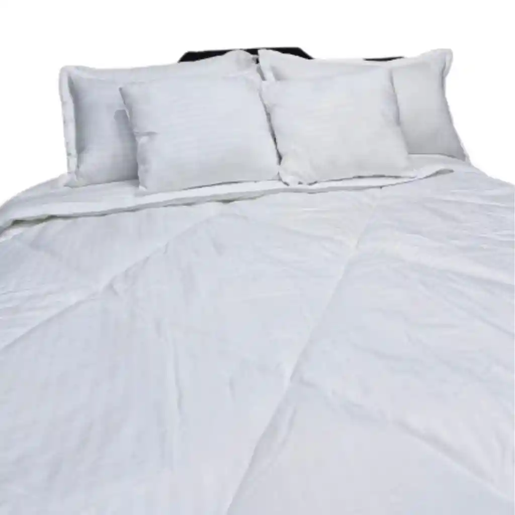 Plumón Caricia King Color Blanco 5 Piezas Algodón de 450 gramos Medidas: Para cama King 200 x 200 cm Plumón: 240x260 cm Dos fundas: 50x70 cm Dos cojines: 35x35 cm Plumón de alta calidad, clásico y elegante que destaca por su simplicidad y versatilidad. Algodón de 450 gramos con textura relieve. Perfecto para personas con alergias. Termosellado. Relleno de fibra siliconada. Costura especial que asegura el relleno a largo plazo. Apariencia ordenada y serena. Ideal para quienes prefieren un ambiente relajante y armonioso en su dormitorio. Hecho en Colombia. Cubrelecho, Cubrecama, Edredon