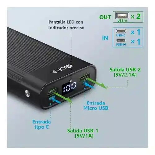 El Power Bank Batería Portátil 20,000mAh 2.1A Carga Rápida 1 Hora GAR117 Negro es una solución eficiente y confiable para mantener tus dispositivos electrónicos cargados mientras estás en movimiento. Aquí te detallo sus principales características: Alta Capacidad de 20,000mAh: Con una capacidad de 20,000mAh, este power bank puede cargar tus dispositivos varias veces antes de necesitar una recarga, lo que lo convierte en una excelente opción para viajes largos, días ajetreados o situaciones donde no tengas acceso a una fuente de energía. Carga Rápida de 2.1A: Equipado con tecnología de carga rápida 2.1A, este power bank permite cargar tus dispositivos móviles a una velocidad superior a la estándar, reduciendo el tiempo de espera y manteniéndote conectado de manera más eficiente. Recarga en Solo 1 Hora: El GAR117 está diseñado para recargarse en solo 1 hora, lo que significa menos tiempo de espera para tenerlo listo nuevamente y poder cargar tus dispositivos. Diseño Compacto y Portátil: A pesar de su alta capacidad, este power bank tiene un diseño compacto que lo hace fácil de transportar, por lo que puedes llevarlo en tu mochila, bolso o incluso en el bolsillo sin dificultad. Compatibilidad Universal: Compatible con una amplia variedad de dispositivos, incluidos teléfonos móviles, tabletas, auriculares, cámaras y otros equipos electrónicos que se cargan a través de puertos USB. Indicador LED: Incorpora una pantalla LED que muestra el nivel de carga restante, permitiéndote conocer en todo momento cuánta energía queda en el power bank para cargar tus dispositivos. Diseño Elegante en Color Negro: Su acabado en color negro le da un toque moderno y elegante, apto para cualquier ocasión y fácil de combinar con otros accesorios tecnológicos. Este Power Bank GAR117 es ideal para quienes buscan una opción de carga potente, rápida y conveniente para mantener sus dispositivos operativos durante todo el día, con una gran capacidad y facilidad de uso. Perfecto para personas en movimiento que necesitan energía adicional en todo momento.