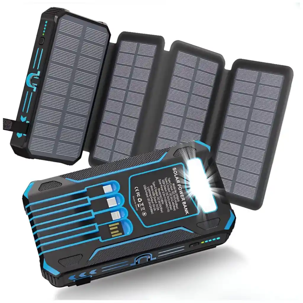 Descubre la solución definitiva para mantener tus dispositivos siempre cargados en cualquier lugar: Power Bank Solar de 4 Paneles, una batería portátil de alta capacidad diseñada para acompañarte en viajes, campamentos, trabajo, caminatas, emergencias y el día a día. Su innovador sistema de cuatro paneles solares plegables permite una recarga más rápida y eficiente aprovechando la energía del sol, ideal cuando estás lejos de tomas eléctricas y necesitas autonomía real. Este cargador cuenta con dos puertos USB y un puerto Tipo C, permitiéndote cargar hasta tres dispositivos al mismo tiempo, ahorrando tiempo y manteniéndote siempre conectado. Su diseño resistente, compacto y moderno lo hace perfecto para actividades al aire libre o uso diario. La carcasa reforzada ofrece durabilidad ante golpes leves, mientras que los paneles se pliegan como un libro, facilitando el transporte en tu bolso, maleta o incluso en la mano sin ocupar espacio innecesario. Incluye una linterna LED superbrillante, ideal para emergencias, cortes de luz, trabajos nocturnos, camping o simplemente para iluminar tu camino. Es un accesorio esencial tanto para aventuras como para situaciones imprevistas. Este power bank combina tecnología, potencia y seguridad, integrando protección contra sobrecargas, sobrecalentamiento y cortocircuitos, asegurando una carga estable y confiable para tus dispositivos. Es una herramienta indispensable para quienes necesitan rendimiento y practicidad sin depender de enchufes. Lleva contigo energía ilimitada donde quieras y cuando quieras. Con este Power Bank Solar 4 Paneles, siempre tendrás una fuente de carga disponible, ecológica y lista para ayudarte en cualquier situación. Características: Capacidad: 20.000 mAh Puertos: 2 USB / 1 Tipo C Cables integrados: USB, Tipo C, V8, Lighting Linterna Integrada Gancho de transporte Lo que obtienes con tu compra: 1 x Power Bank 1 x Gancho