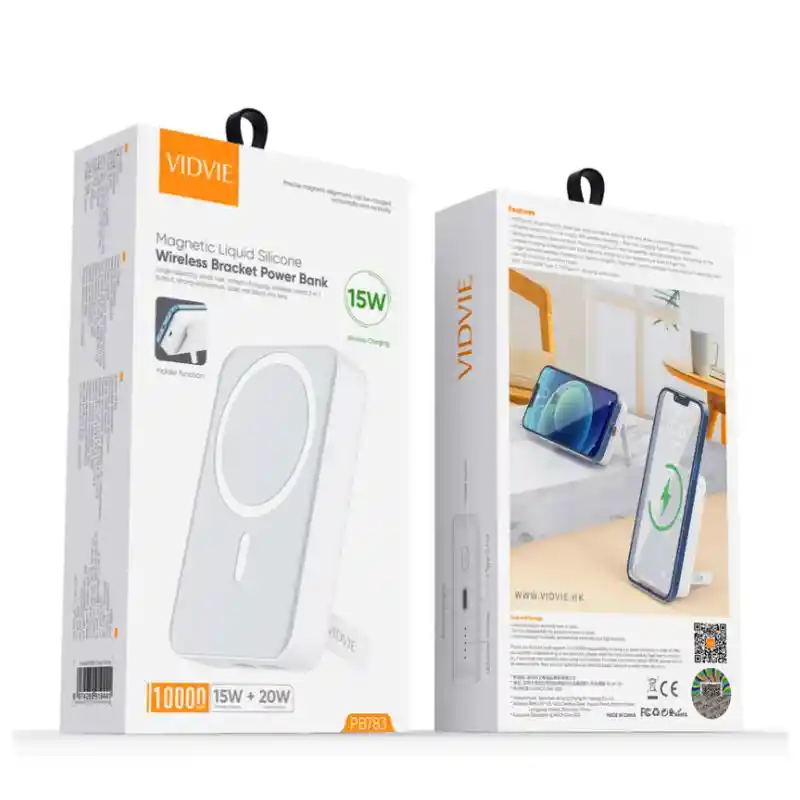 Power Bank con carga inalambrica la superficie esta diseñada de silicona liquida y material termoplástico derivado de polímeros de alta calidad, sus materiales comprimen el amperaje de manera integral, brindando una potencia de watts de manera funcional, su soporte esta diseñado para una carga horizontal o vertical Banco de energía de carga inalámbrica. Carga Inalámbrica Capacidad 10.000 mAh Capacidad nominal: 6000 mAh Tipo de celda: Polimero Material de la cubierta: ABS+PC+ silicona liquida Entrada Tipo C: CC 5V/3A,9V/2.22A,12V/1.67A Salida Tipo C:CC 5V/3A,9V/2A,12V/1.5A Potencia maxima del cableado: PB 20W Salida carga inalambrica: 15W Tamaño del producto: 99*67*20mm Peso del producto: 220g Color: blanco Temperatura de trabajo: -10°C -50°C
