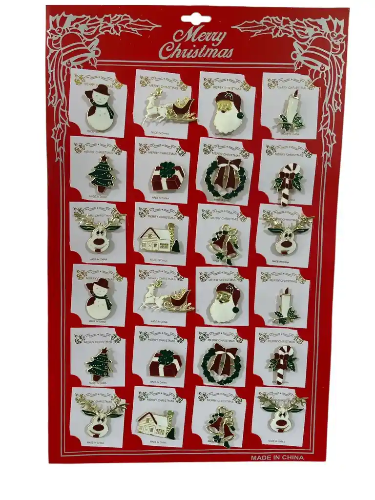 Prendedores Dorados Navideños Estos prendedores dorados añaden un toque de estilo y safisticacion a cualquier look. Su acabado brillante y diseño versatil los hacen perfectos para combinar con ropa casual o formal ideales para fiestas eventos o incluso para el uso diario. Son ligeros, resistentes y muy fáciles de colocar, lo que los convierte en el accesorio ideal para decorar ropa bolsos gorros o proyectos de manualidades. Un detalle elegante que realza cualquier outfit se envia de manera aleatoria o segun disponibilidad de la tienda.
