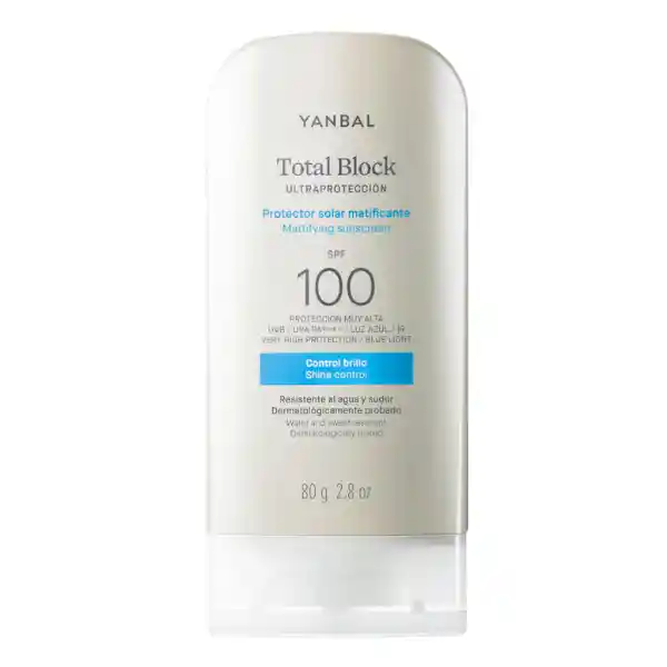 Protector solar con vitamina E de alta protección solar 100, dermatológicamente probado, muy resistente al agua y al sudor.