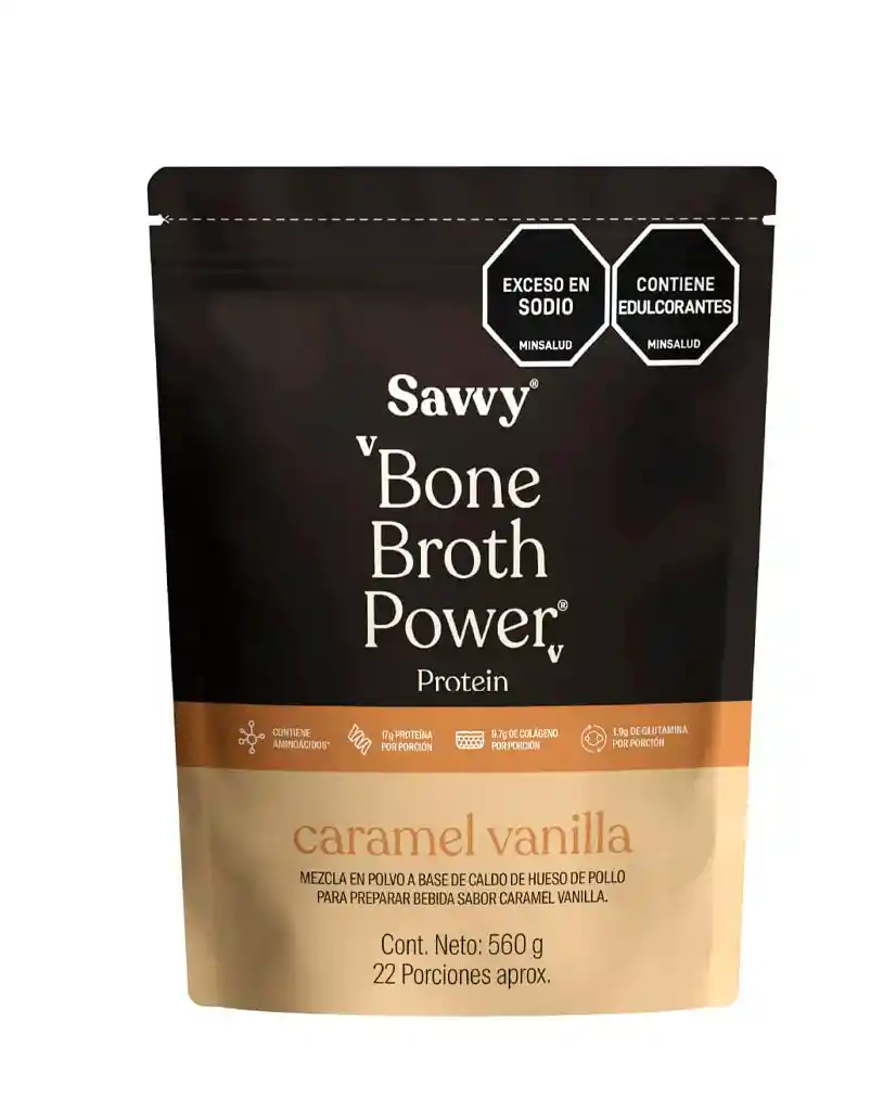 Proteina Bone Broth Power Vainilla Caramel Savvy 560 Gr