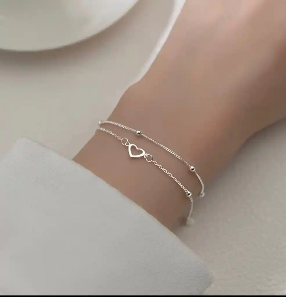 Pulsera doble corazon plateada