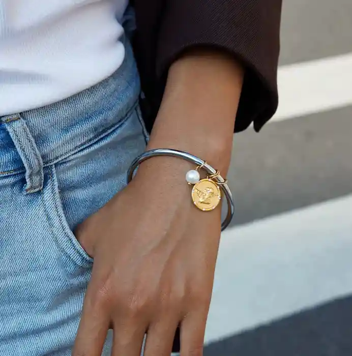 La pulsera Lixia es ese detalle sutil que transforma cualquier look. Su diseño rígido en tono plateado se comp...Ver más
