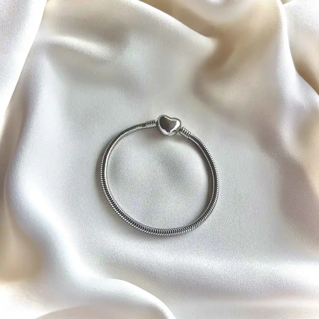 La pulsera incluye únicamente el lazo los charms se compran por separado. Nuestra pulsera memorias en acero inoxidable es la base perfecta para crear una joya única que refleje tu estilo y personalidad.