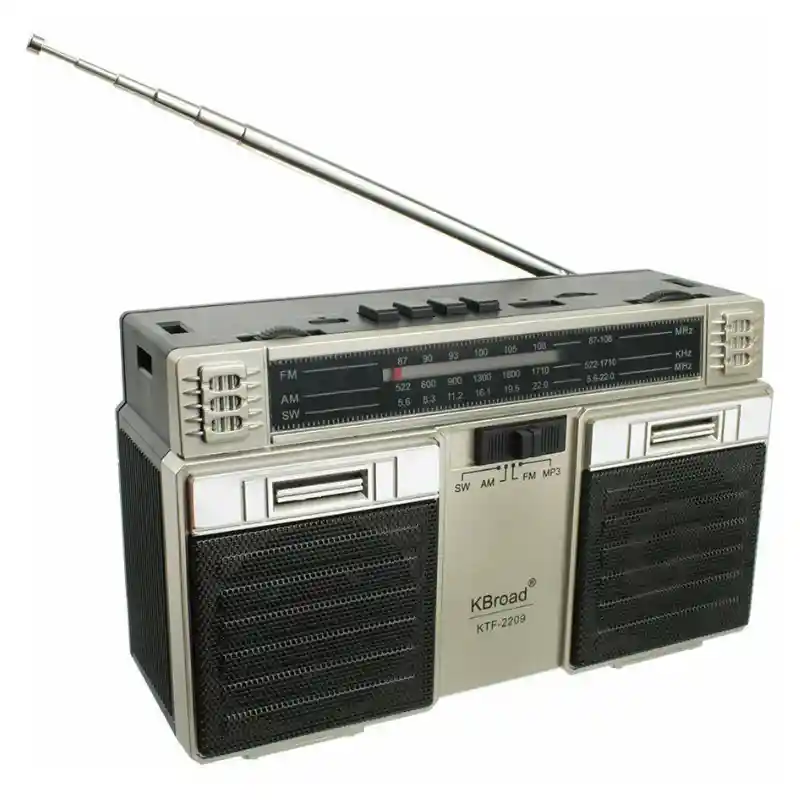 La Radio KBroad KTF-2209 es un radio portátil de banda completa diseñado para quienes buscan autonomía, resistencia y versatilidad. Ideal para el hogar, viajes, campo, emergencias o uso diario. Cuenta con panel solar integrado, batería recargable y múltiples opciones de reproducción para que nunca te quedes sin sonido. Características principales Marca: KBroad Modelo: KTF-2209 Bandas: AM / FM / SW (onda corta) Reproductor MP3 desde USB y tarjeta TF (microSD) Panel solar para carga alternativa Batería recargable incluida Antena telescópica de alta sensibilidad Entrada USB DC 5V para carga Sonido estéreo potente Diseño portátil con correa de transporte Ideal para Hogar y oficina Viajes y camping Zonas rurales Emergencias y apagones Adultos mayores y amantes de la radio tradicional Contenido del paquete Radio KBroad KTF-2209 Batería recargable Cable USB de carga Correa de transporte Caja original