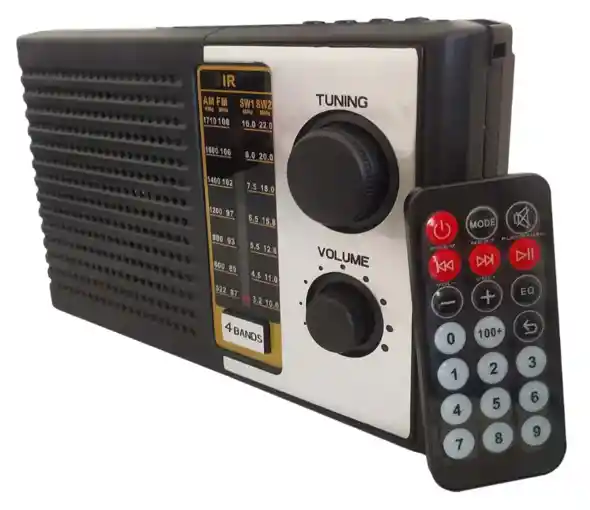 Experimenta la versatilidad de la radio tradicional combinada con tecnología moderna en el FX-007 RADIO FGX TECH. Este equipo de diseño compacto y funcional ofrece cuatro bandas de recepción, conectividad inalámbrica y control remoto para máxima comodidad. Su diseño práctico en color negro con detalles plateados lo hace ideal para uso doméstico, oficina o actividades al aire libre. Características Principales Cuatro Bandas de Radio: AM (522-1620 KHz), FM (87-108 MHz) y dos bandas de Onda Corta SW1 (3.2-10.0 MHz) y SW2 (4.5-22.0 MHz). Conectividad Bluetooth para transmitir música desde tu smartphone u otros dispositivos. Entrada USB para reproducir música desde memorias. Control Remoto incluido para manejar todas las funciones desde la distancia. Diseño Compacto y Funcional con perillas grandes de fácil manejo y pantalla de sintonía clara. Antena Telescópica extensible para óptima recepción de señal. Receptor de infrarrojos para el control remoto. Especificaciones Técnicas Potencia: 3W RMS de salida de audio. Batería: Batería recargable de litio 1200mAh. Autonomía: Hasta 5-7 horas de reproducción continua. Alimentación: Batería recargable o Corriente DC con cable incluido. Conectividad: Bluetooth, USB, Control Remoto IR. Dimensiones: Compacto y ligero para fácil transporte. Ideal Para Hogar para escuchar noticias, música y programas favoritos. Oficina como equipo de sonido discreto y funcional. Exterior para camping, picnics y actividades recreativas. Personas mayores por su fácil manejo y control remoto. Regalo práctico para amantes de la radio tradicional. Contenido del Paquete 1 Radio FX-007 FGX TECH. 1 Control remoto. 1 Cable de carga DC. 1 Manual de usuario. El FX-007 RADIO FGX TECH combina la confiabilidad de las radios clásicas con las comodidades modernas como Bluetooth y control remoto. Su recepción en cuatro bandas garantiza que siempre encontrarás la señal que buscas, mientras disfrutas de tu música personalizada mediante USB o conexión inalámbrica.