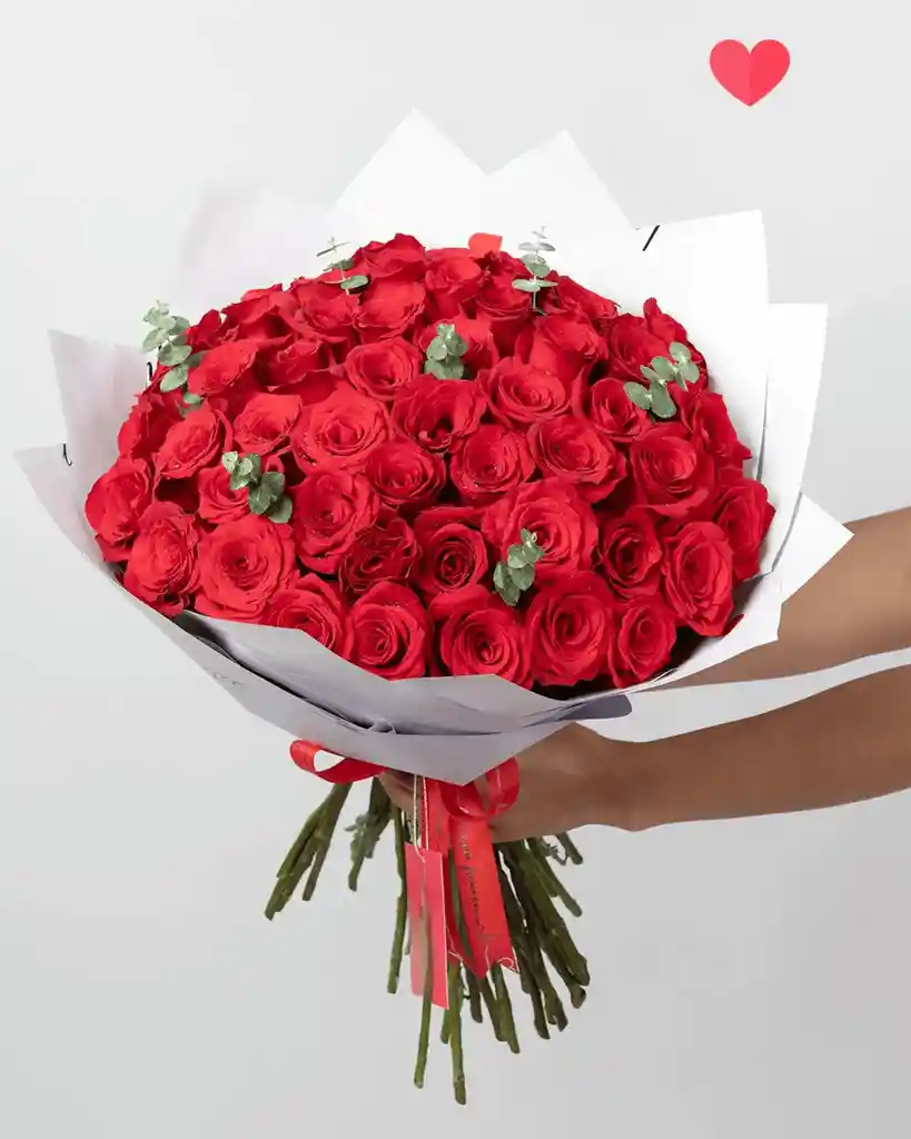 Ramo Buchón 50 Rosas Rojas ¡El regalo ideal para una ocasión tan especial! Un hermoso ramo buchón de 50 rosas rojas. ¡Le va a encantar! Especificaciones Ramo Buchón 50 rosas rojas 50 hermosas rosas rojas Follajes estacionales para embellecer el ramo. Envoltura de papel coreano. Tarjeta de cortesía en la que podrás dedicar unas bellas palabras de amor. Medida: 50 cm. Aprox.