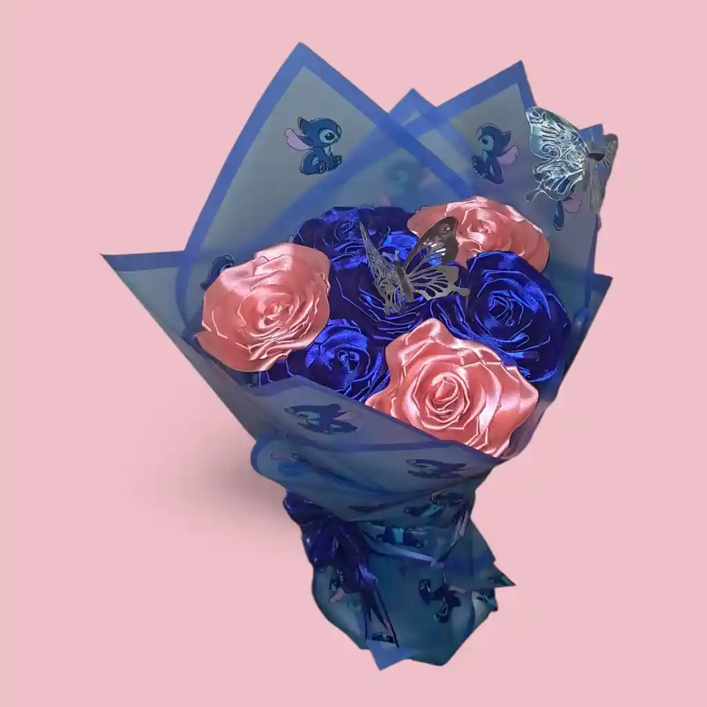 Este hermoso ramo está confeccionado con 4 exquisitas rosas eternas elaboradas a mano con cinta de satén: 4 azules 💙 que representan la profundidad y la calma, y 3 rosadas 💕 que simbolizan el cariño y la ternura. La combinación de colores es un deleite visual. Incorpora una luz LED sutil que ilumina las flores, creando un ambiente mágico ✨. El toque final lo dan tres delicadas mariposas doradas 🦋 que aportan un aire de elegancia y libertad. Es el regalo perfecto para expresar un amor que dura para siempre. ¡Una obra de arte que nunca se marchita! 🎁 #RamoEterno #RosasDeSaten #RegaloEspecial #FloresEternas #RosasHechasAMano #LuzLed #MariposasDoradas #AmorInfinito #DetallePerfecto #ArtesaníaFloral