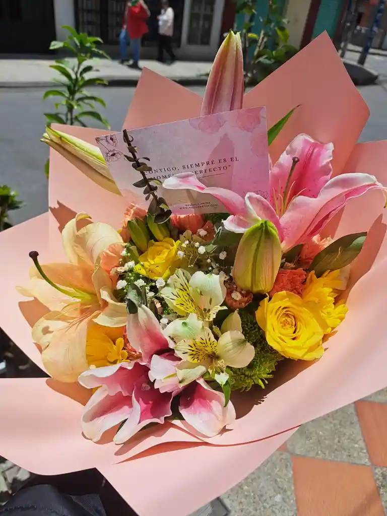 Amor y Arena crea ramos totalmente personalizados para cada persona y ocasión 🥰💐. Ramo mediano en lirios, en tonos AMARILLOS Y BLANCOS que hacen que tu día se llene de ARMONÍA, PAZ y SERENIDAD.