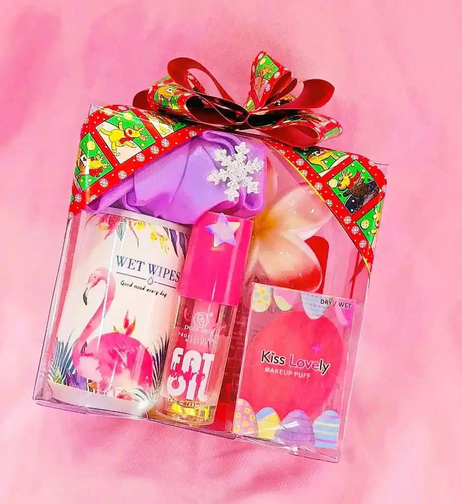 ✨ ESTUCHE NAVIDEÑO PINK • REGALO DE NAVIDAD 🎄🎁 Perfecto para regalo navideño: maquillaje + skincare en una cajita de acetato decorada con moño festivo. Ideal para niñas, teens o cualquier amante del estilo pink aesthetic. Incluye: • Pañitos húmedos en lata – prácticos y portátiles. • Scrunchie de tela – suave y sin maltratar el cabello. • Gloss aplicador Jumbo – brillo intenso e hidratante. • Mascarilla de labios Bioaqua – suaviza e hidrata profundamente. • Caimán flor hawaiana – accesorio para el cabello súper cute. • Beauty Blender – esponja para maquillaje dry/wet. Todo en cajita de acetato navideña, lista para regalo. 🎁✨ 🎄🎁⛄Ideal para sorprender esta Navidad. IMPORTANTE: EDICION LIMITADA UNICAMENTE POR TEMPORADA NAVIDEÑA 🎄🎁⛄