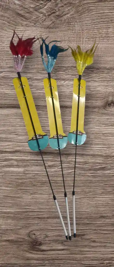 ESTE PRODUCTO SE ENVIA SEGUN DISPONIBILIDAD DE DISEÑO Y COLOR REGALO JUGUETE VARA CON PLUMAS Y BRILLANTES PARA GATO