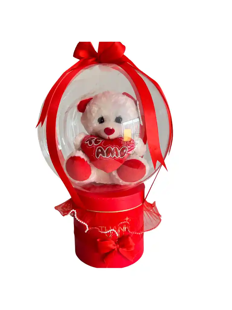 Regalo romántico en burbuja transparente con oso de peluche “Te Amo” 🧸❤️ Incluye chocolates, bebida, galletas y dulces surtidos 🍫🥤🍪 Perfecto para sorprender en fechas especiales o enamorar cualquier día 💝 En la base encontrarás una deliciosa selección de dulces y antojos: 🍫 Chocolatina en barra hersheys 🥤 Bebida te hatsu 200 ml 🍫Barquillos piazza 🍫Dulces Big Ben 🍫 Manimoto ✨ Presentación elegante 🎁 Listo para regalar 🚚 Entrega rápida