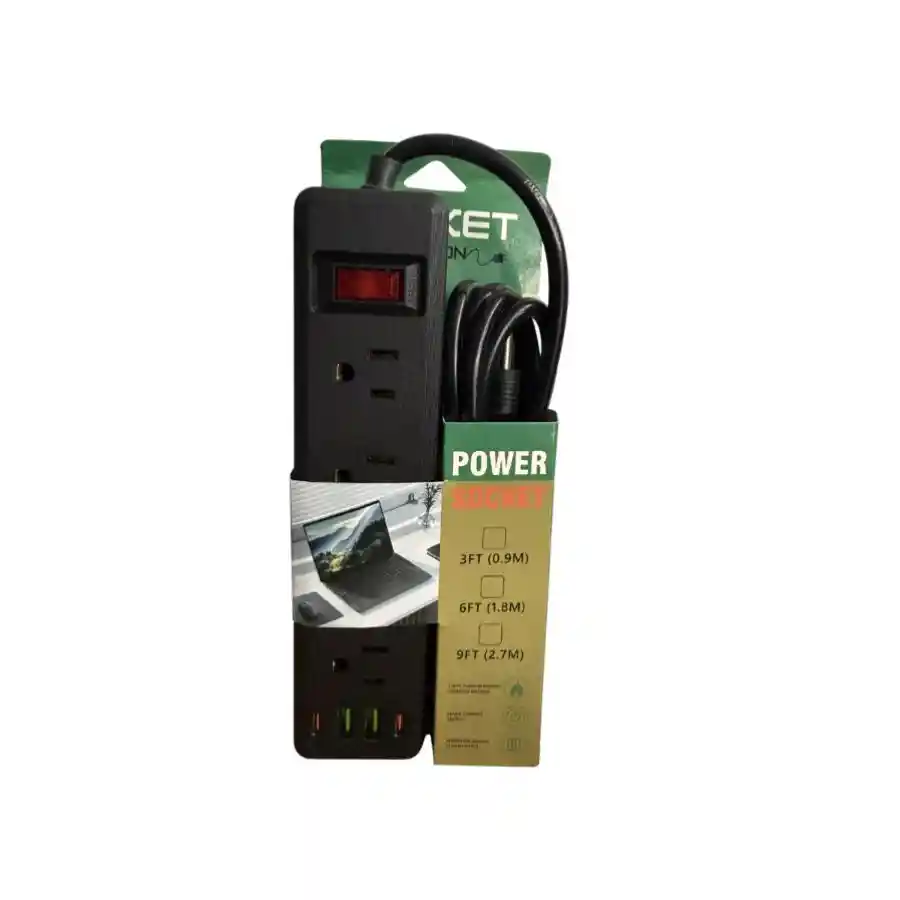 Regleta Eléctrica Multitoma 8AC/2USB/2C Color Negra - Color Negra - 8 tomas AC - 2 puertos USB - 1 puerto Tipo C - Interruptor de encendido - Material resistente - Cable de conexión incluido - Uso doméstico y oficina