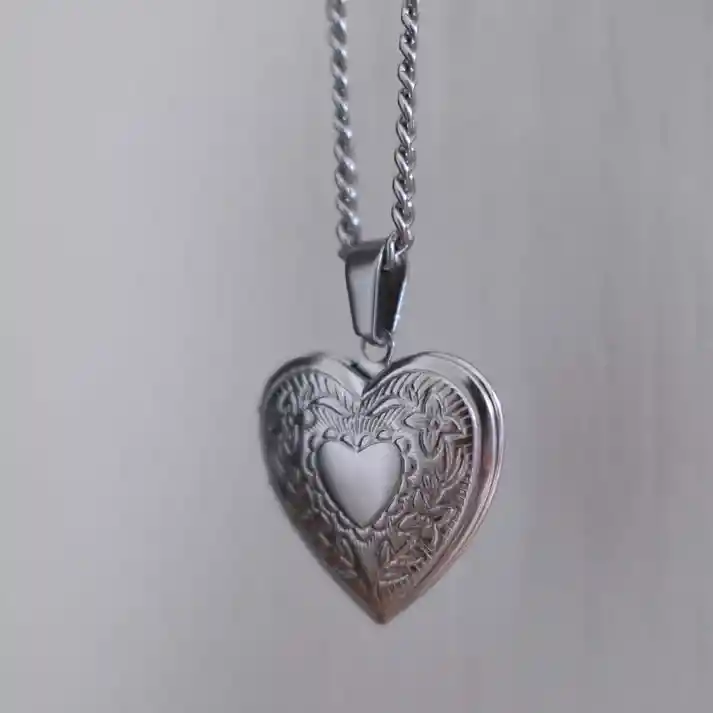 Medallón Mi Corazón en Plata PVD Lo que más importa, cerquita de tu corazón. Fabricado en acero inoxidable hipoalergénico de grado quirúrgico, con baño PVD color plata. El acabado espejo atrapa la luz y la devuelve con ese brillo limpio que no pasa desapercibido. Plata PVD: moderna, pura, equilibrada. SIN FOTOS