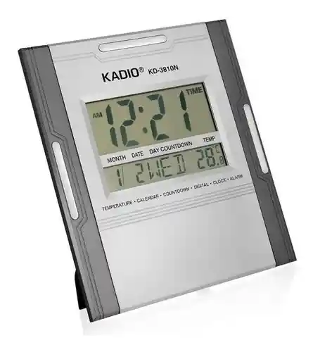 Funciones: Muestra hora, calendario (mes, fecha, día), temperatura y cuenta regresiva. Pantalla: Cuenta con una pantalla digital de gran tamaño para una fácil lectura. Diseño: Modelo KD-3810N en color gris, diseñado para montaje en pared o uso sobre mesa. Alarma: Incluye función de alarma integrada. El Reloj Digital de Pared Cuadrado Kadio KD-3808 en color gris no solo te proporciona la hora de manera precisa, sino que también incluye funciones adicionales que hacen de él un accesorio útil y versátil para tu espacio. Con su diseño cuadrado y pantalla digital, este reloj es moderno y fácil de leer. Además de mostrar la hora, también cuenta con una función de temperatura, lo que te permite conocer la temperatura ambiente de forma instantánea. Este reloj es perfecto para decorar tu pared, ya sea en el hogar u oficina, y su funcionalidad adicional lo hace aún más conveniente. CARACTERISTICAS Reloj Digital de Pared Cuadrado Kadio KD-3808 en color gris. Diseño moderno y cuadrado para decorar tu espacio. Pantalla digital para una lectura fácil y rápida de la hora. Función de temperatura para conocer la temperatura ambiente. Perfecto para el hogar u oficina. Alimentado por baterías para mayor versatilidad de ubicación. Fácil de montar en la pared. Ofrece la hora y la temperatura de manera clara. Estilo contemporáneo y funcionalidad combinados. Accesorio útil y decorativo para cualquier ambiente.