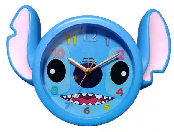 Este reloj despertador infantil con diseño tipo Stitch es perfecto para decorar habitaciones de niños y al mismo tiempo ayudarles a aprender la hora de forma divertida. Su diseño colorido con orejas laterales y rostro animado lo convierte en un accesorio decorativo llamativo para mesas de noche, escritorios o repisas. Cuenta con números grandes y de colores, lo que facilita la lectura del reloj para niños. Su mecanismo de reloj es silencioso y preciso, ideal para dormitorios infantiles sin ruidos molestos. Además, su tamaño compacto de aproximadamente 15 cm lo hace fácil de ubicar en cualquier espacio. Fabricado en material plástico resistente y ligero, este reloj combina funcionalidad y estilo, siendo también una excelente opción como regalo para niños o fans de personajes animados. Características principales: Diseño infantil tipo personaje Stitch Tamaño aproximado: 15 cm de ancho x 11 cm de alto Números grandes y coloridos para fácil lectura Funcionamiento con pila (no incluida) Material plástico resistente Ideal para habitaciones infantiles, escritorios o decoración Ligero y portátil
