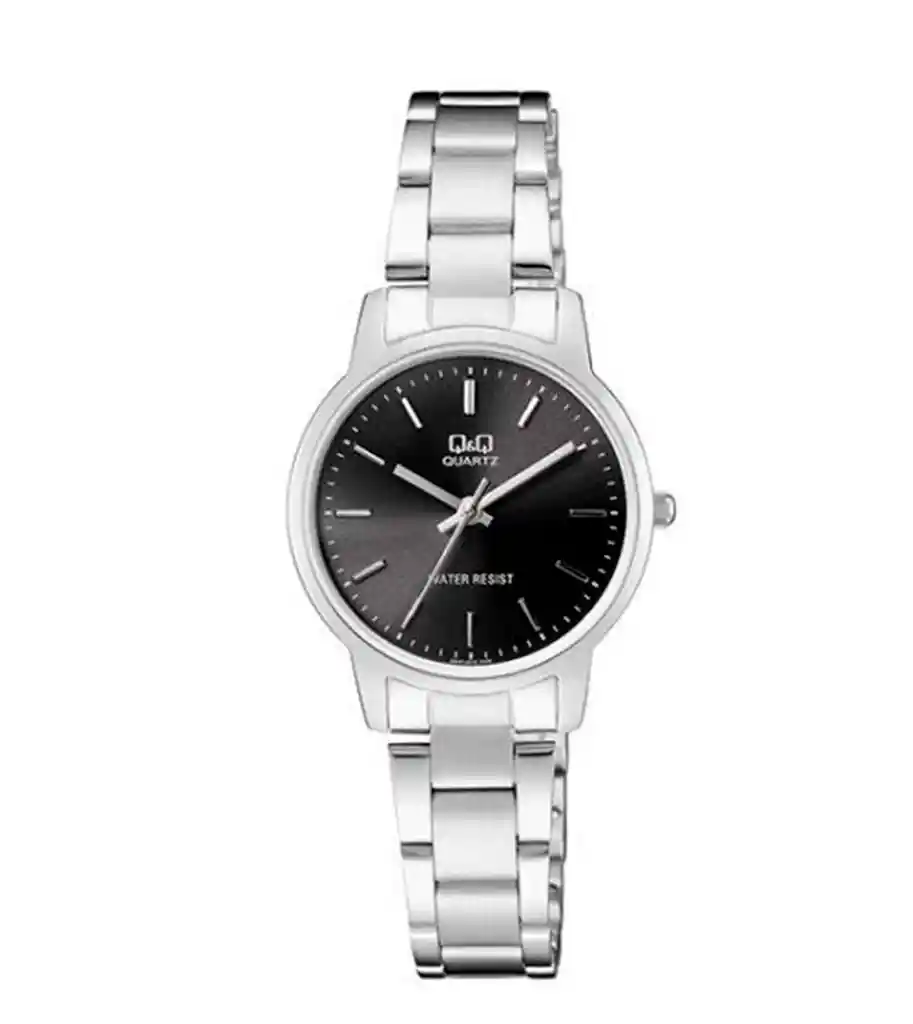 Este reloj QQ combina estilo y resistencia. Con correa de acero inoxidable y resistencia al agua, es perfecto para cualquier ocasión, ofreciendo durabilidad y elegancia en un diseño moderno y funcional. /// El reloj incluye estuche y bateria de repuesto /// Ficha Técnica: Tipo de Maquinaria: Japonesa Diámetro de la esfera: 3.3 cm Grosor de la Esfera: 0.7 cm Ancho de la correa: 1.1 cm Longitud del reloj: 22 cm Resistencia al agua : si Material de la correa: Acero Inoxidable Material de la esfera: Aleación Metal Peso: 50 gr Genero : Dama _Para defectos de fábrica o retractos: _Por favor revise el producto apenas lo reciba y antes de usarlo. No aplican ley de retracto o defectos de fábrica luego de usar el producto. Se manejan máximo 5 días para reportar defectos de fábrica (por ejemplo, piezas faltantes, rotas, etc). En cuanto a maquinaria se da tres meses de garantía, es decir el buen funcionamiento del producto. Para hacer efectiva la devolución el producto debe devolverse con el empaque original, el cual debe estar en buen estado, incluir todos los documentos y las partes completas y sin daños Garantía del vendedor: 3 meses
