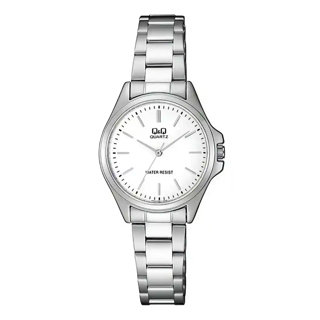 Este reloj QQ combina estilo y resistencia. Con correa de acero inoxidable y resistencia al agua, es perfecto para cualquier ocasión, ofreciendo durabilidad y elegancia en un diseño moderno y funcional. /// El reloj incluye estuche y bateria de repuesto /// Ficha Técnica: Tipo de Maquinaria: Japonesa Diámetro de la esfera: 3.3 cm Grosor de la Esfera: 0.6 cm Ancho de la correa: 1.1 cm Longitud del reloj: 22 cm Resistencia al agua : si Material de la correa: Acero Inoxidable Material de la esfera: Aleación Metal Peso: 50 gr Genero : Dama _Para defectos de fábrica o retractos: _Por favor revise el producto apenas lo reciba y antes de usarlo. No aplican ley de retracto o defectos de fábrica luego de usar el producto. Se manejan máximo 5 días para reportar defectos de fábrica (por ejemplo, piezas faltantes, rotas, etc). En cuanto a maquinaria se da tres meses de garantía, es decir el buen funcionamiento del producto. Para hacer efectiva la devolución el producto debe devolverse con el empaque original, el cual debe estar en buen estado, incluir todos los documentos y las partes completas y sin daños Garantía del vendedor: 3 meses