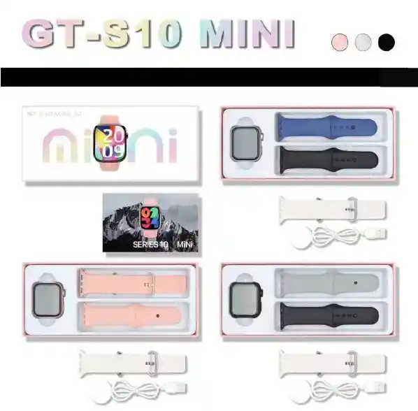 Reloj Smart Watch GT Serie 10 Mini Negro / Plata / Oro rosa + 3 correas en silicona intercambiables
