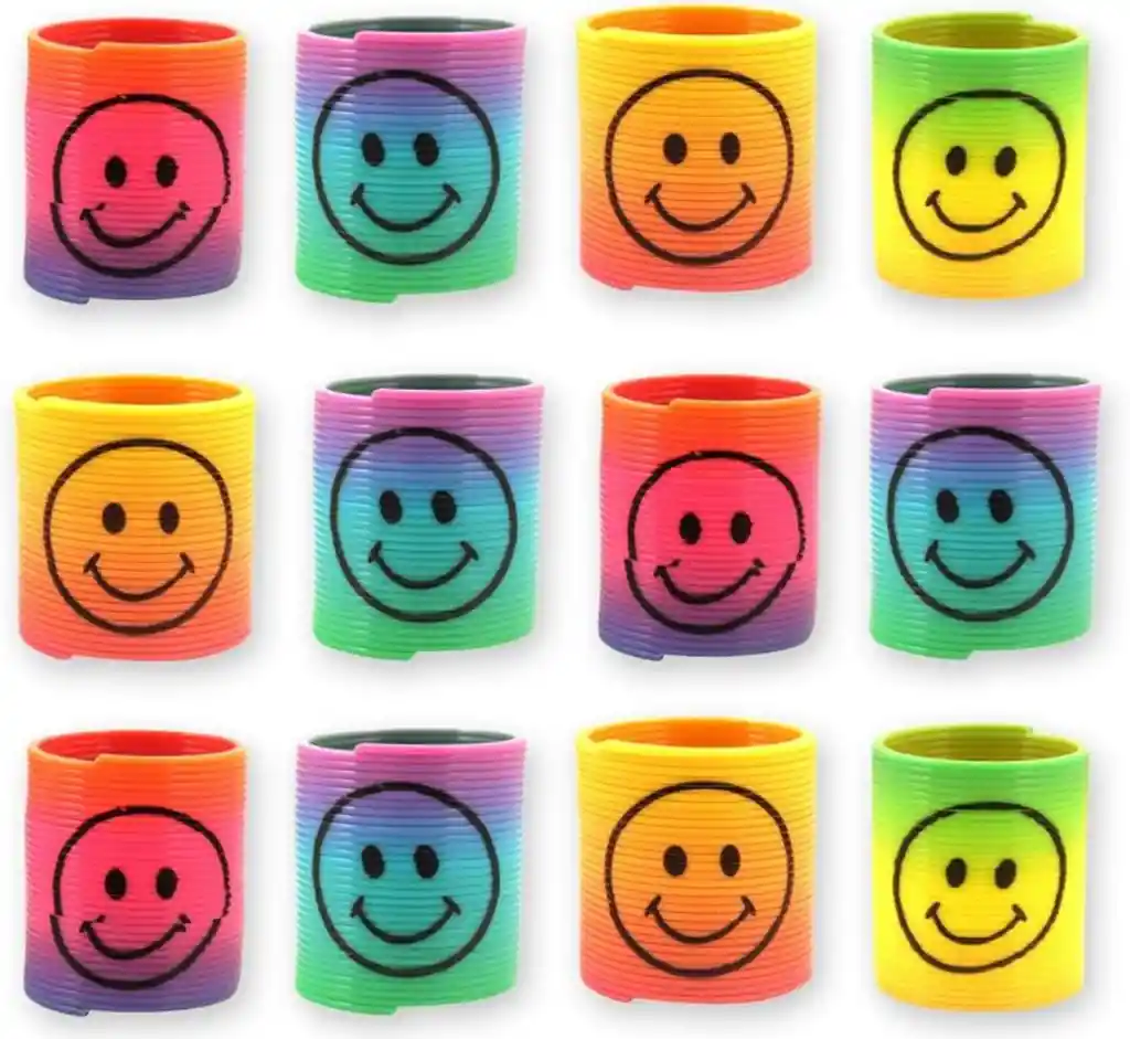 resorte de diferentes colores con diseño de carita feliz Para que juegues y te diviertas El paqeute viene x12und