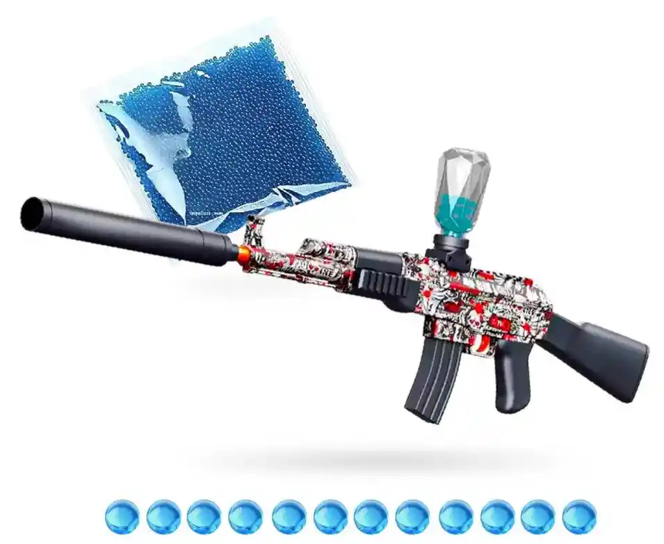 Rifle AK-47 Hidrogel Innovo+ – Diversión, potencia y seguridad en un solo producto Lleva la acción de los videojuegos a la vida real con el Rifle AK-47 de Hidrogel Innovo+, la ametralladora de gel más buscada del momento. Su diseño robusto, tamaño realista de 90 cm de largo y su disparo automático por ráfagas lo convierten en el juguete perfecto para niños, jóvenes y adultos. Con capacidad para 10.000 municiones de gel, recargables y biodegradables, disfrutarás horas y horas de juego seguro, dinámico y sin desorden. Las esferas de hidrogel se desintegran al impacto, por lo que no manchan, no dañan y no representan riesgo para los niños mayores de 8 años. Su batería recargable integrada ofrece un rendimiento prolongado, mientras su sistema de disparo automático proyecta esferas a una distancia de 10 a 15 metros, ideal para juegos en patios, zonas abiertas o competencias de puntería. ¿Por qué elegir el AK-47 de Hidrogel Innovo+? Seguro y confiable Las esferas de gel son suaves, se desintegran y no requieren limpieza posterior. Potente y realista Disparo automático por ráfagas, cargador superior, detalles tipo camuflaje y silenciador decorativo. Máxima diversión garantizada Perfecto para juegos grupales, competencia, recreación en familia y actividades outdoor. Gran capacidad de municiones Incluye 10.000 balas de hidrogel que se hidratan en 2 a 4 horas. Materiales duraderos Plástico ABS de alta resistencia, ligero pero robusto. Listo para usar