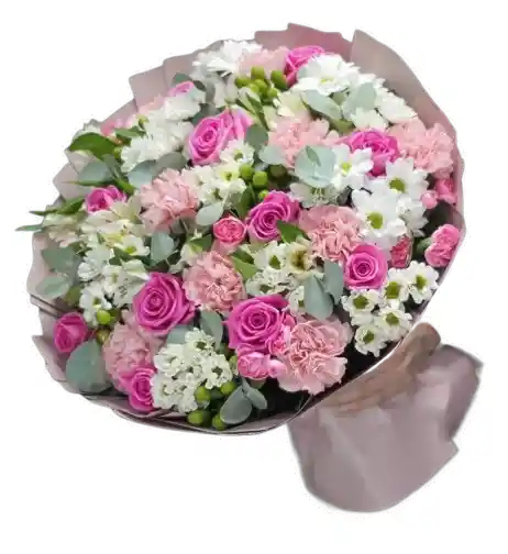 Bouquet floral en tonos rosados y blancos, elaborado con flores frescas de alta calidad y un diseño profesional lleno de armonía y sofisticación. Algunas flores pueden variar sutilmente según la temporada, manteniendo siempre la frescura, el estilo y el valor del arreglo. Incluye tarjeta personalizada sin costo para acompañar tu mensaje especial.