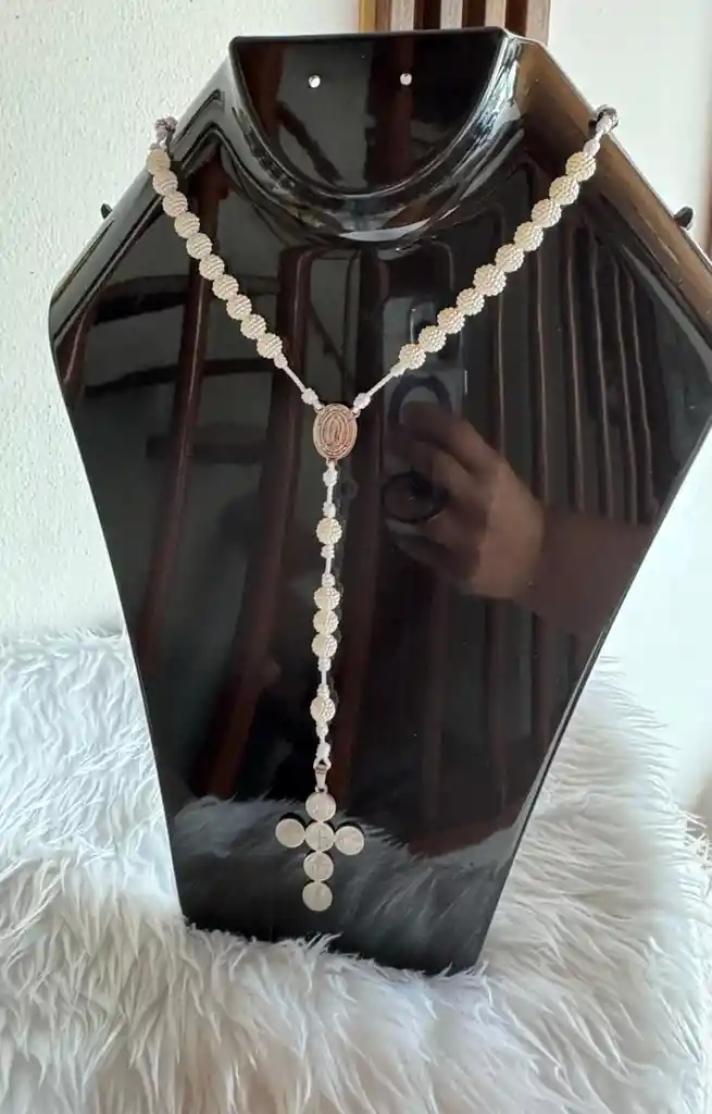 Eleva tus momentos de oración con este hermoso rosario artesanal, elaborado con cuentas en pepa mora de alta calidad que reflejan suavidad, luz y pureza con detalles plateados. Incluye: ✨ Medalla plateada con diseño religioso en acero inoxidable ✨ Misterios distinguidos con perlas de rodio ✨ Cruz dorada especial y distintiva en acero inoxidable ✨ Ensamblado en hilo resistente para mayor durabilidad ✨ Ideal para uso diario, regalos espirituales, bautizos, primeras comuniones y acompañar tus espacios sagrados Su diseño delicado y moderno lo convierte en una pieza significativa, perfecta para quienes buscan un rosario hermoso, resistente y con un acabado premium.