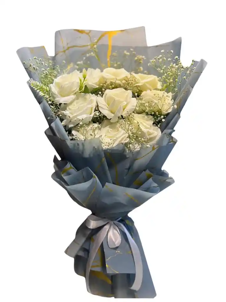 Ramo floral con 12 unidades rosas blancas con papel coreano