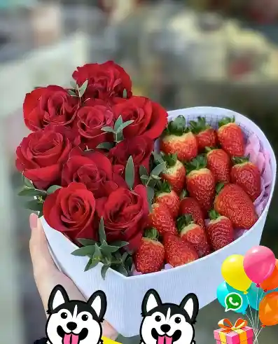 Contenido: 24 Rosas Rojas Medio Corazón de Fresas Delicias Del paraiso 1 Figura en Corazon