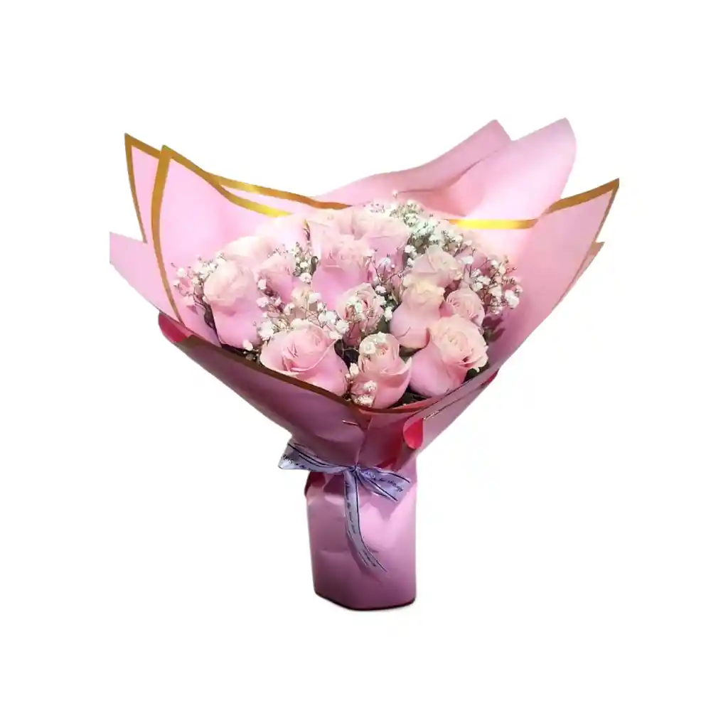 Bouquet de 18 rosas rosadas con yicso.