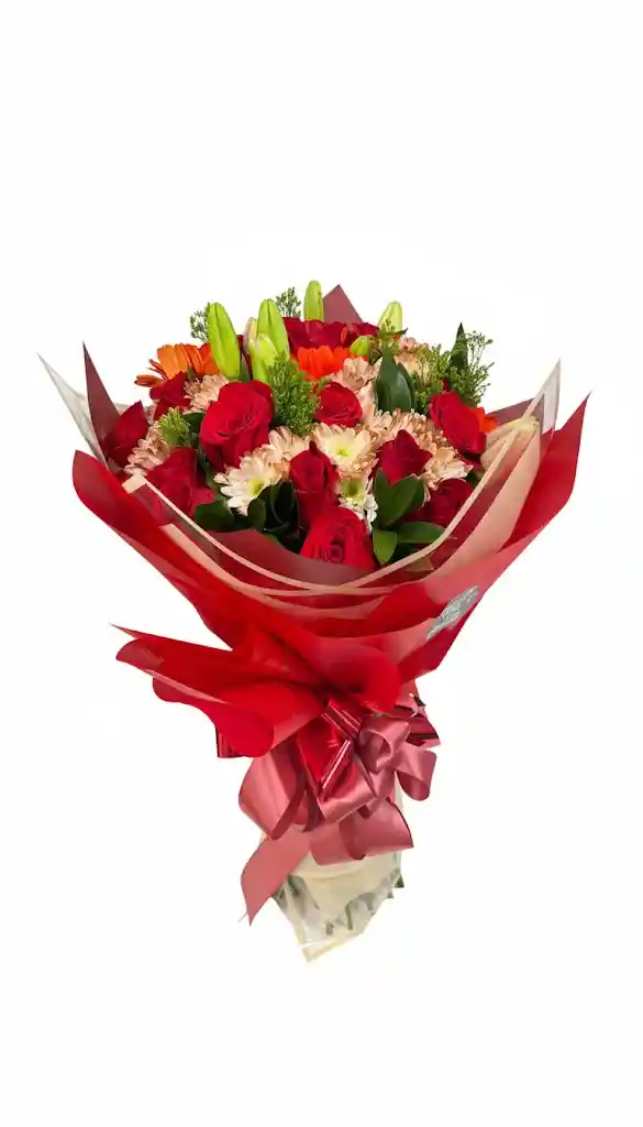 Bouquet 12 de rosas rojas, gerberas, margaritas, lirios y follajes verdes decoradas con papel y moño. 💛 🌸Ideal para dar en ocasiones como: - El Clásico Romance: Rosas rojas son el símbolo de amor apasionado. Detalle perfecto para celebrar un aniversario (bodas o de novios). Los tonos rojos refuerza ese mensaje de "te sigo eligiendo". - Declaración de Amor: Si quieres confesar sus sentimientos por primera vez, este ramo no deja lugar a dudas. Es audaz, vibrante y visualmente impactante, ideal para una cena romántica. - Logros y Graduaciones: Gracias a los toques de color naranja y verde, el ramo también transmite energía y éxito. Sería un regalo fantástico para alguien que acaba de abrir un negocio, se ha graduado o recibió un ascenso importante. - Cumpleaños Especiales: Para una pareja, una madre o una figura muy querida que ame los colores vibrantes. Los lirios irán abriendo con los días, lo que hace que el regalo "evolucione" y dure más tiempo decorando la casa 🌸🌺Puedes crear una nota con tus datos personales con la siguiente información para ayudarnos a entregar tu regalo y evitar posibles errores. * Nombre quién envia. * Numero de Telefono. * Correo Electrónico. * Dirección de entrega. * Mensaje personalizado. * Persona que recibe y número de teléfono. 💐 Hecho con cuidado, pensado para emocionar. 💐