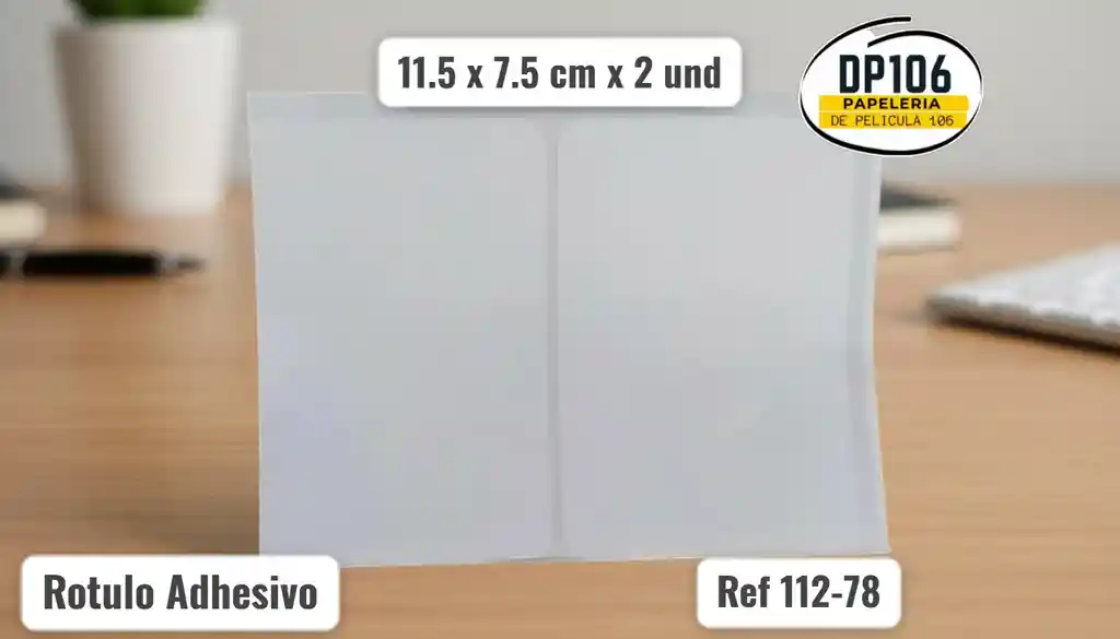 1 hoja con 2 rotulos adhesivos de medidas 7.5 cm x 11.5 cm