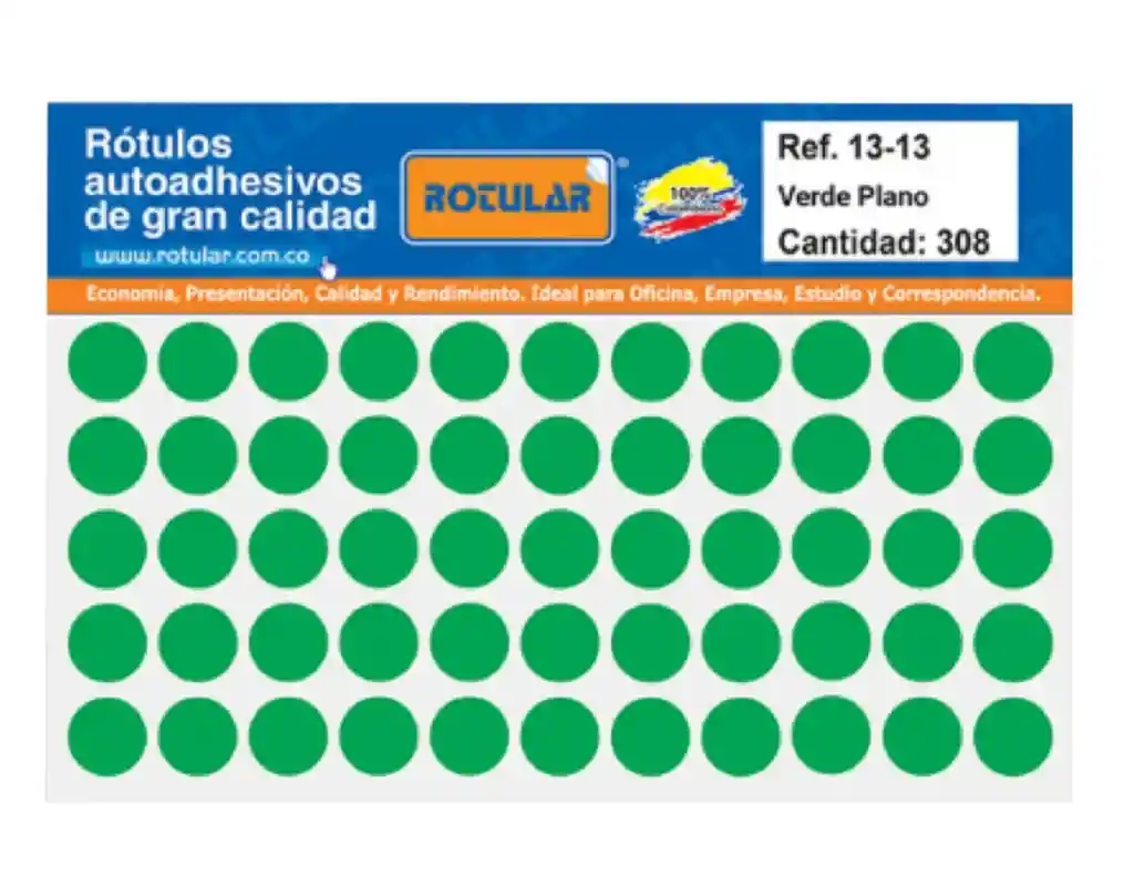 Rótulo Adhesivo Verde Plano 16 x 16 mm – Pack de 80 unidades (1 und) Etiquetas adhesivas planas de color verde, diseñadas para rotulación visual, clasificación por color e identificación rápida. Su formato cuadrado de 16 mm x 16 mm es ideal para etiquetar elementos pequeños de forma clara y ordenada. Características: Color verde llamativo para facilitar la identificación visual o codificación por color. Superficie plana compatible con escritura manual (bolígrafo, marcador, lápiz). Adhesivo resistente que se fija bien a papel, cartón, plástico, vidrio y otras superficies lisas. Medidas: 16 mm de ancho x 16 mm de alto. Contenido: 80 etiquetas por paquete (1 unidad). Ideal para oficinas, almacenes, comercios, instituciones educativas o uso doméstico.