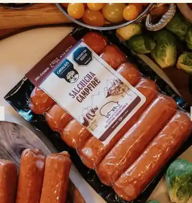 Salchicha elaborada con una mezcla de especias donde destacan la nuez moscada, la flor de macis, el jengibre y la pimienta blanca. Se ahúma de forma intensiva con madera natural de haya, logrando ese inconfundible sabor tostado y ahumado que evoca una fogata. Es ahumada de forma súper intensiva con madera natural de haya, dándole los toques de asado al estilo fogata.
