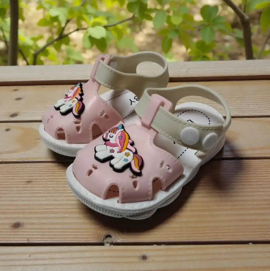 Sandalias de unicornio para niñas bebé Estas adorables sandalias de unicornio están diseñadas especialmente para las más pequeñitas. Su diseño tierno y colorido estimula la imaginación, mientras que su material suave y ligero brinda comodidad durante todo el día. Cuentan con ajuste seguro para proteger los pies del bebé y permitir libertad de movimiento. Son ideales para paseos, reuniones familiares o para darle un toque mágico a cualquier outfit. Prácticas, cómodas y encantadoras, ¡perfectas para acompañar sus primeros pasos!