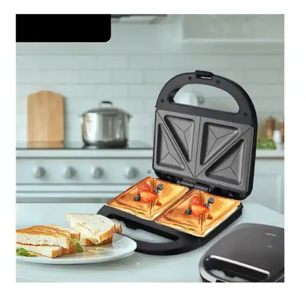 ¡Haz tus desayunos y comidas más rápidas y deliciosas! La sandwichera eléctrica Sokany SK-08056 está diseñada para preparar sándwiches calientes, crujientes y perfectamente sellados en minutos. Su sistema de calentamiento doble permite una cocción uniforme del pan y el relleno, mientras sus placas antiadherentes facilitan la limpieza y evitan que los alimentos se peguen. Compacta, práctica y fácil de usar, es ideal para el hogar. 🔹 Características Marca Sokany Modelo SK-08056 Potencia 750 W calentamiento rápido Capacidad para 2 sándwiches triangulares Sistema de calentamiento doble cara Placas fijas con molde triangular sellador Recubrimiento antiadherente Indicador LED de funcionamiento Carcasa termo resistente Cierre mecánico de seguridad Control térmico automático Diseño compacto y práctico 🔹 Especificaciones técnicas Voltaje 220–240 V Frecuencia 50/60 Hz Color negro Uso doméstico Temperatura controlada automáticamente 🔹 Beneficios Cocción uniforme y consistente Reduce el tiempo de preparación Sellado perfecto que evita derrames Menor uso de aceite gracias a su superficie antiadherente Fácil limpieza y mantenimiento Operación sencilla para cualquier usuario Ideal para cocinas con poco espacio