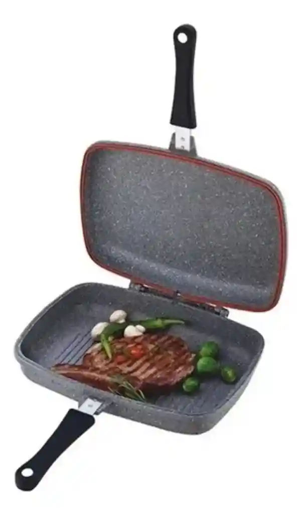 Sartén Doble Parrilla Antiadherente Dessini Italiana 36 cm Cocinar se convierte en una tarea más eficiente. Ideal para preparar carnes jugosas o verduras al punto, esta Sartén Doble Dessini facilita la elaboración de una amplia variedad de recetas gracias a su superficie que evita que los alimentos se adhieran. Fabricada en aluminio fundido a presión, cuenta con un recubrimiento que permite cocinar sin que los alimentos se peguen. Su diseño incluye un sistema de cierre magnético que asegura una cocción uniforme por ambos lados. CARACTERISTICAS: Superficie que evita la adherencia en ambas caras. Permite cocinar por ambos lados. Posibilita la preparación de alimentos saludables sin necesidad de aceite. Adecuado para sofreír, saltear, asar, flamear. - Cierre magnético. - Incluye 1 Sartén Doble Antiadherente Dessini. Garantía del vendedor: 3 meses