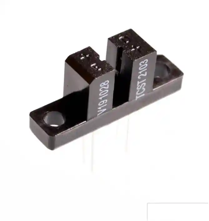 TCST2103, TCST2202 y TCST2300 son sensores transmisivos que incluyen un emisor de infrarrojos y fototransistor, ubicado cara a cara en los ejes opticos en una paquete con plomo que bloquea la luz visible. Esta parte los numeros incluyen opciones para el ancho de apertura. CARACTERISTICAS Tipo de paquete: con plomo Tipo de detector: fototransistor Dimensiones (L x A x H en mm): 24.5 x 6.3 x 10.8 Brecha (en mm): 3.1 Corriente de salida tipica bajo prueba: IC = 4 mA (TCST2103) Corriente de salida tipica bajo prueba: IC = 2 mA (TCST2202) Corriente de salida tipica bajo prueba: IC = 0.5 mA (TCST2300) Filtro de bloqueo de luz diurna Longitud de onda del emisor: 950 nm Soldadura sin plomo (Pb) liberada Cumple con la directiva RoHS 2002/95 / EC y en de conformidad con RAEE 2002/96 / CE LA COMPRA INCLUYE: 1X SENSOR HERRADURA oPTICO TCST2103