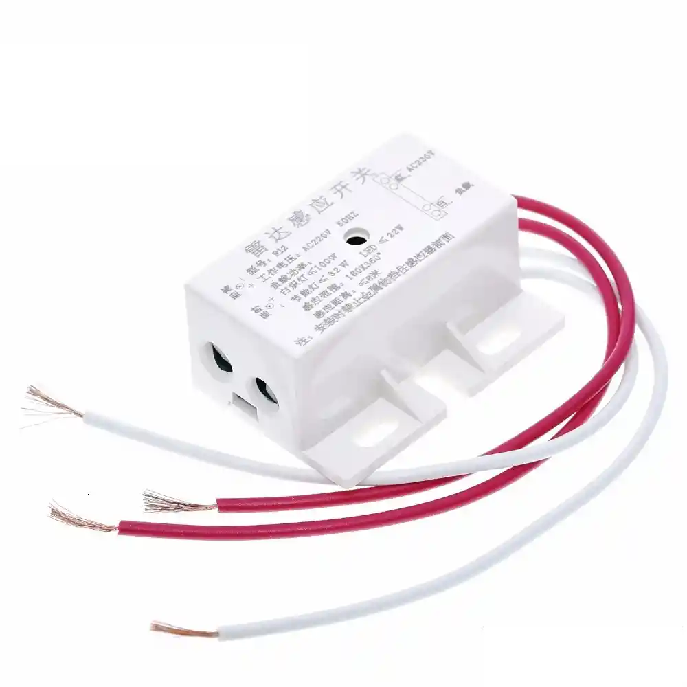 Voltaje: AC 110-220V / 60Hz Potencia de carga: en espera <0.5W Distancia de induccion: 4-8 m (ajustable) Extension de tiempo: 10s-70s (ajustable) Encendido: control de luz, no se puede ajustar angulo de deteccion: 180x360 C Temperatura ambiente: -10 - 60 C Color blanco Tamaño: 4.8 x 3.5 x 2.2cm Longitud del cable: 14 C Tamaño del orificio de fijacion: 8 x 3 mm Distancia del centro del orificio de fijacion: 28 mm Alcance: pasillos, pasillos, escaleras. Tipo de carga: incandescente, lamparas de bajo consumo, lampara, LED Tipo de carga: lampara incandescente < 100W, lamparas de bajo consumo, tubo circular < 32W, LED < 15W Segun el efecto Doppler, las actividades del cuerpo del sensor del entorno circundante. Cuando una persona u objeto ingresa al rango de deteccion de actividades, el interruptor se activara automaticamente hasta un estado estacionario o dejara los estados de rango, apagado automatico. Con la funcion de control de luz, de manera predeterminada solo funciona de noche o con poca luz, normal (la luz del dia o la luz ambiental es relativamente fuerte, el caso de prueba no funciona correctamente, tenga en cuenta). Penetra parcialmente la induccion de materiales no metalicos. Tales como vidrio, madera, plastico. Menos de 15 cm tambien puede penetrar las paredes de induccion. Instalacion oculta adecuada, no afecta la apariencia. Tenga en cuenta: 1, prohibe la instalacion en vivo esta prohibida la carga en corto. (El interruptor de ajuste No vivo causara daños a su riesgo) 2, prohibe el uso de potencia de ultracarga. 3, cuando el grosor de la pared es inferior a 15 cm, el interruptor de la pared puede reaccionar. 4, en el area de induccion, no afectan la deteccion de objetos u obstaculos que detienen el movimiento, no tienen interferencias electromagneticas de otros dispositivos. 5, no se oponga a lo volatil como base de instalacion. 6, inicialmente encendido, el sensor cambiara automaticamente las luces de punto. Asegure el movimiento libre dentro del rango de deteccion de objetos, un ciclo despues de que el interruptor este abierto, recuperacion automatica del control de luz, si hay actividad alrededor del objeto, el interruptor siempre permanecera encendido. 7, entre los dos interruptores si no hay obstaculos u obstrucciones que penetren facilmente en el material (como vidrio, madera, etc.), mantenga la distancia entre el interruptor mas de 5 metros, demasiado cerca entre los dos interruptores interfieren entre si. LA COMPRA INCLUYE: 1X SENSOR INTERRUPTOR MOVIMIENTO RADAR R12